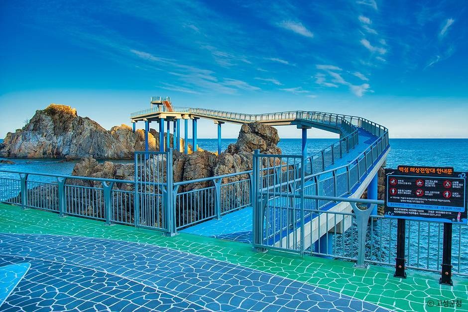 동해 바다 위를 걷는 듯한 스릴감! 투명 유리바닥 전망대가 인상적인 바다 위 데크입니다. 짜릿한 체험과 바다 절경을 동시에 누릴 수 있습니다.
