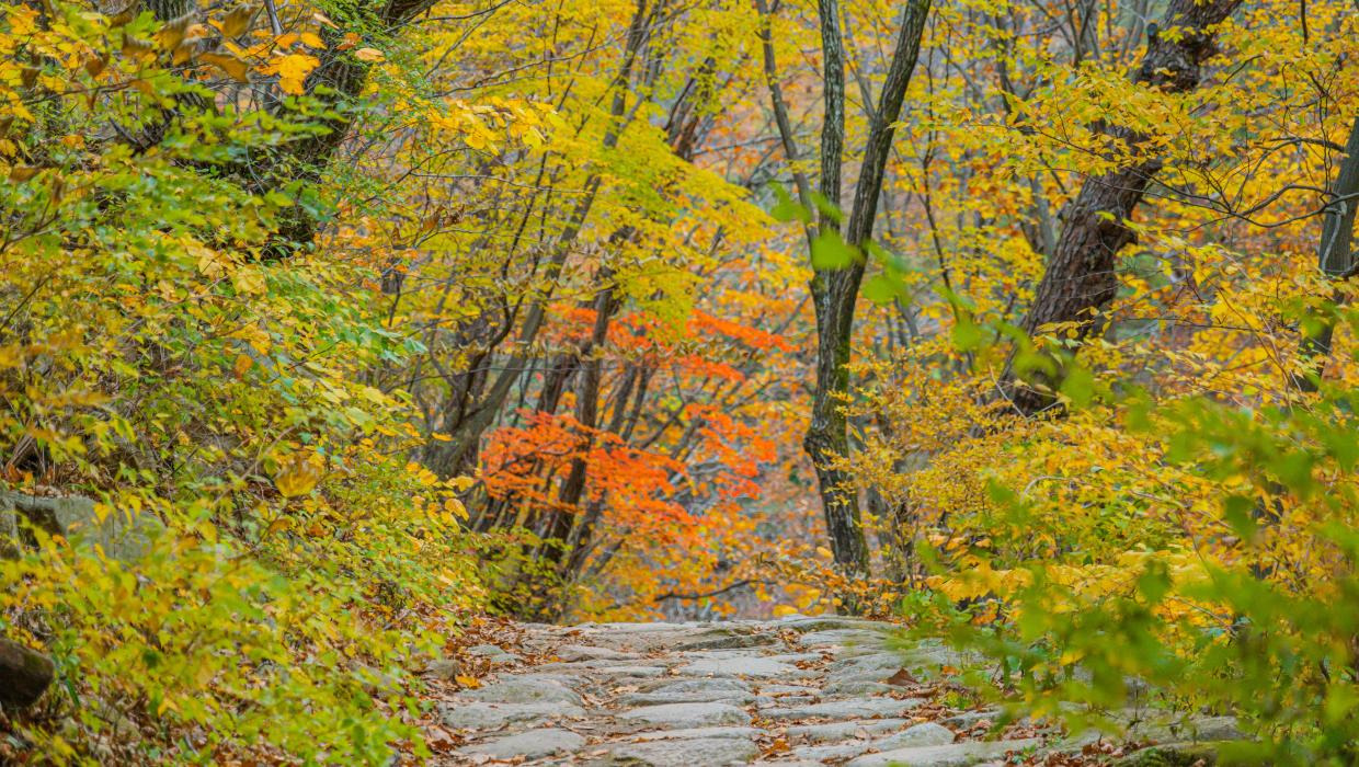 고즈넉한 숲속 사찰과 단풍길을 함께 즐길 수 있는 곳.