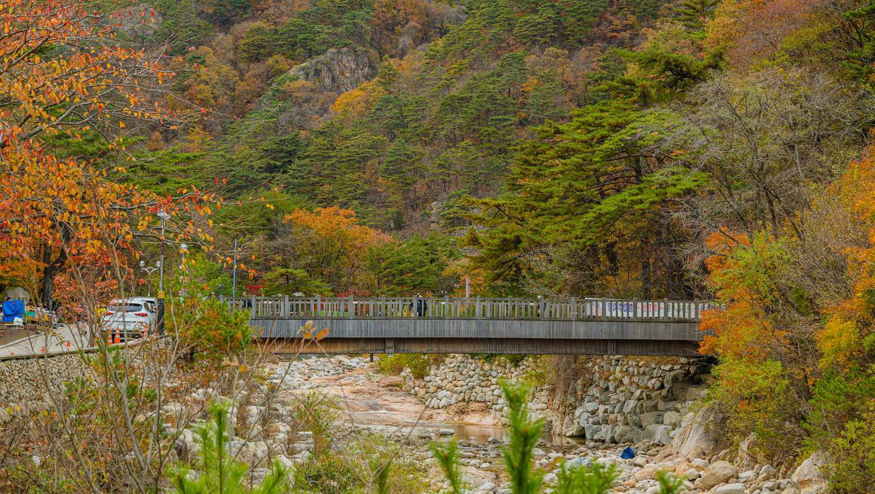 계곡과 단풍이 어우러진 산책로는 누구나 걷기 쉬운 코스로 가족, 커플 모두에게 인기입니다.