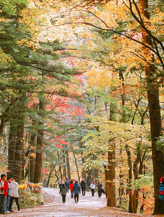 고즈넉한 숲속 사찰과 단풍길을 함께 즐길 수 있는 곳.