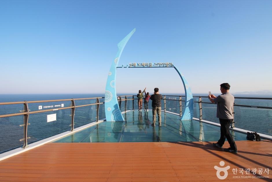 강원도 동해 가볼만한곳 베스트10 세 번째는 도째비골 스카이밸리입니다. 바다 위로 길게 뻗은 스카이워크, 짜릿한 짚라인, 그리고 다양한 테마 시설로 구성된 이곳은 스릴을 찾는 여행자들에게 완벽한 장소입니다. 바다 위에 설치된 투명 유리 다리를 걸으며 마치 하늘을 걷는 듯한 기분을 만끽할 수 있습니다. 테마파크식 조형물과 야간 조명도 설치되어 있어 낮과 밤 모두 색다른 매력을 느낄 수 있으며, 이곳 역시 2025~2026 한국관광 100선에 포함되었습니다.
