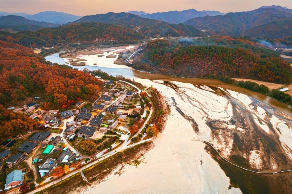 무섬마을은 ‘물돌이 마을’로도 잘 알려져 있으며, 전통 가옥이 고스란히 보존된 정감 어린 마을입니다. 내성천이 마을을 둘러 감고 있어 물과 함께 살아가는 선조들의 지혜를 엿볼 수 있죠. 외나무다리를 건너 마을로 들어서는 독특한 경험은 사진으로 남기기에도 좋습니다. 영주 가볼만한곳 베스트10 중 가장 감성적인 장소로 꼽히며, 영화나 드라마 촬영지로도 유명합니다.
