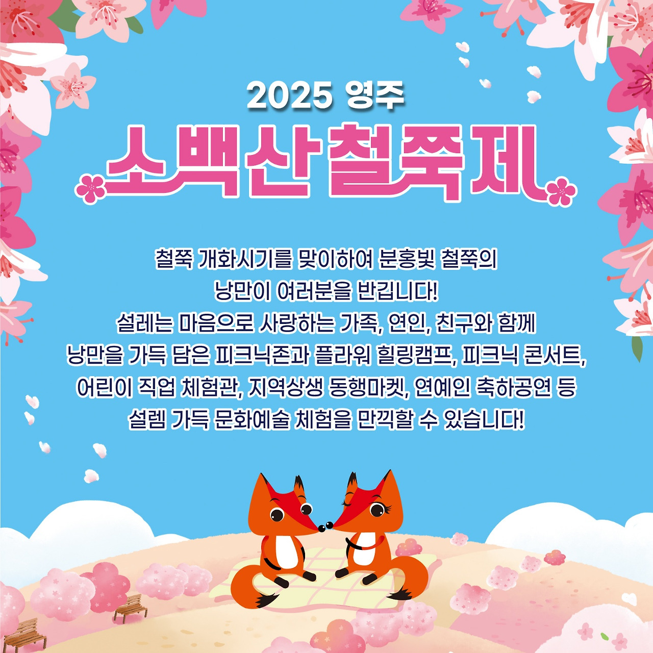 매년 5월 말에서 6월 초 사이 열리는 소백산 철쭉제는 해발 1,400m 고산지대에 펼쳐지는 철쭉 군락의 장관을 감상할 수 있는 축제로, 영주의 대표 봄 축제 중 하나입니다. 형형색색 철쭉과 함께 산상음악회, 체험행사 등도 함께 열려 자연과 문화가 어우러진 특별한 경험을 선사합니다.