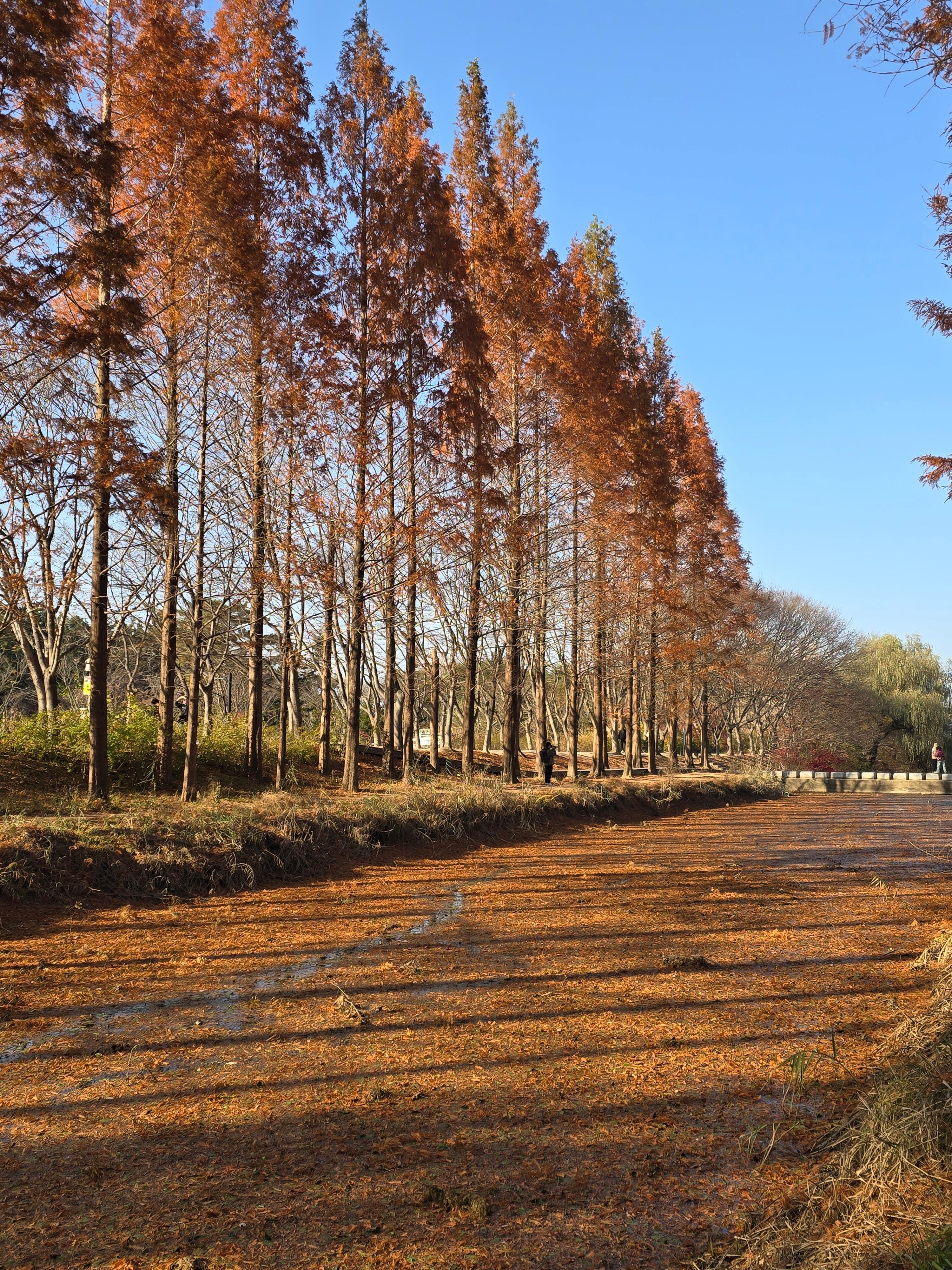 낙엽 가득한 메타세쿼이아 길에서 겨울 문턱의 정취를 느끼기에 좋은 장소입니다.