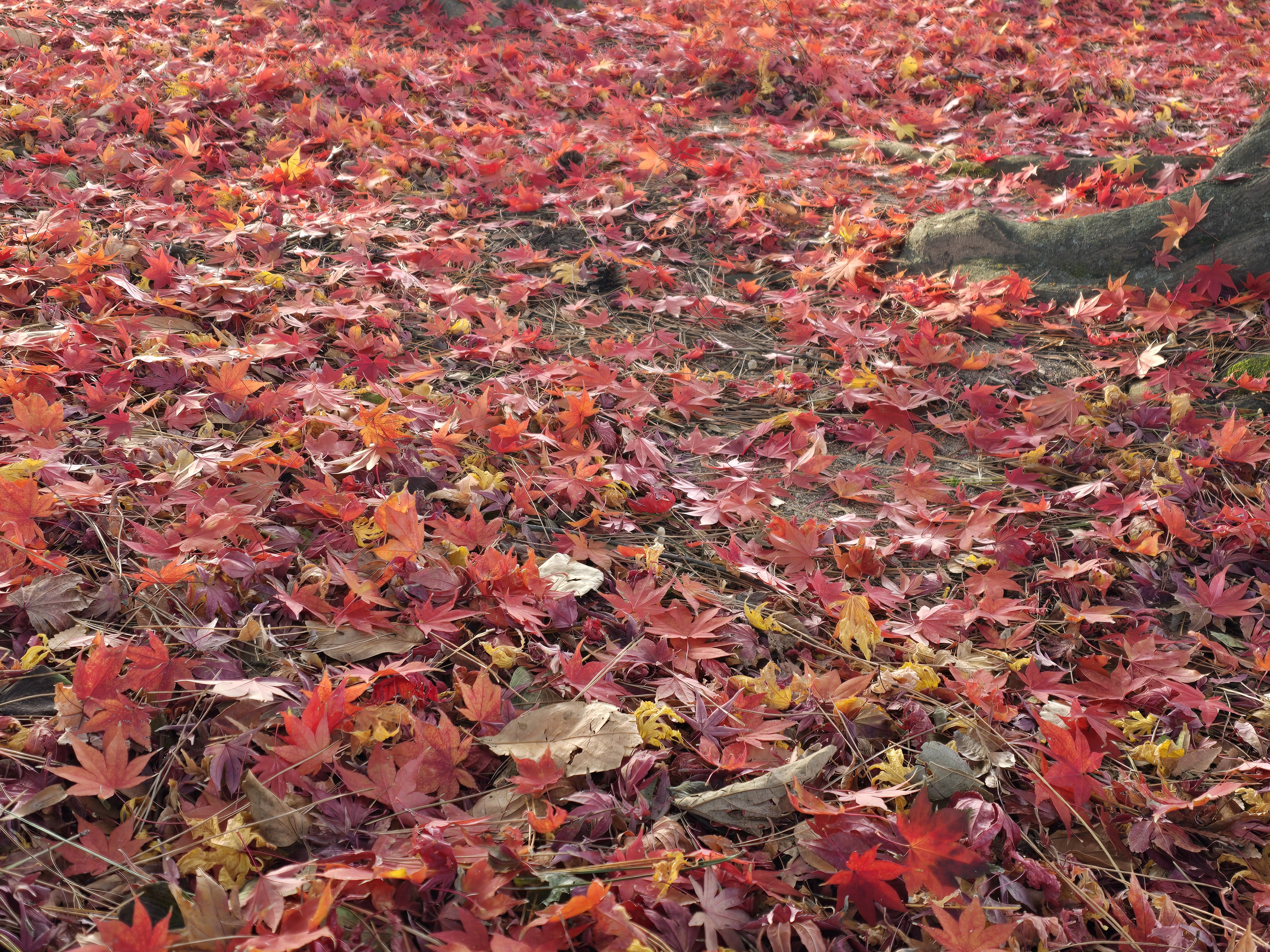 바닥은 붉고 노란 단풍잎으로 가득 덮여,