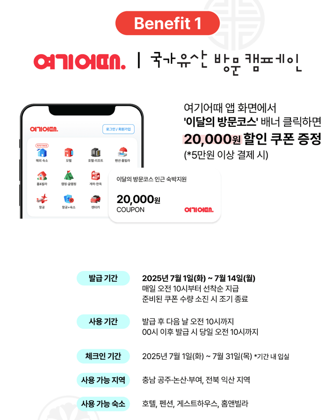 - 숙박 할인: ‘여기어때’ 앱을 통해 인근 숙소 할인 쿠폰 제공(선착순)