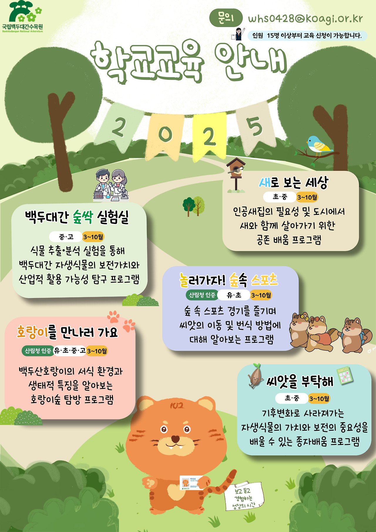 운영시간, 입장료, 편의시설, 교육 프로그램, 호랑이숲, 그리고 수목원 정원 스탬프투어까지...