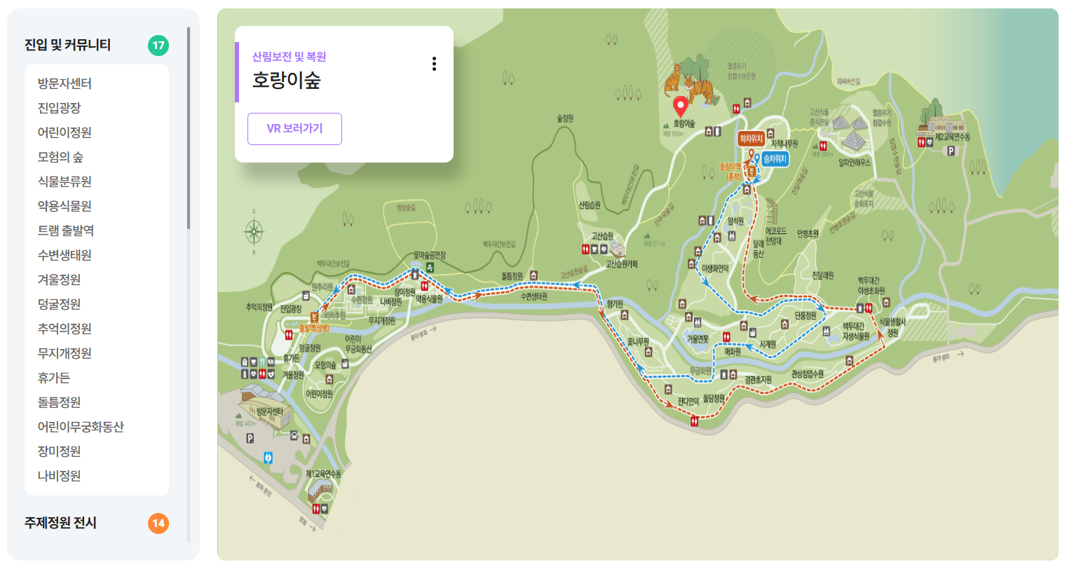 호랑이숲은 국립백두대간수목원의 하이라이트 중 하나입니다.