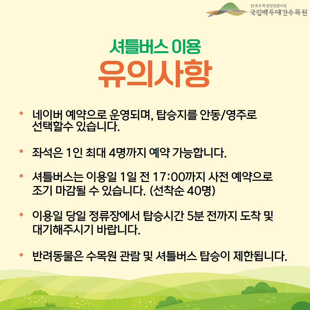 국립백두대간 수목원이 국내 최대 수목원이다보니, 소요시간이 길어지는 것은 미리 감안해야합니다.