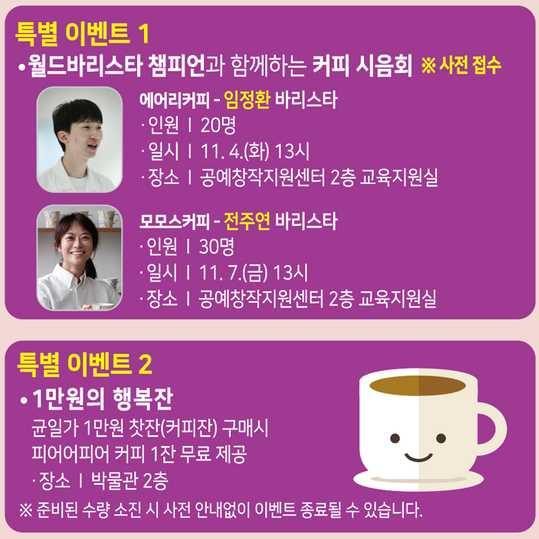🎉 전시부터 체험, 공연, 먹거리, 커피까지!