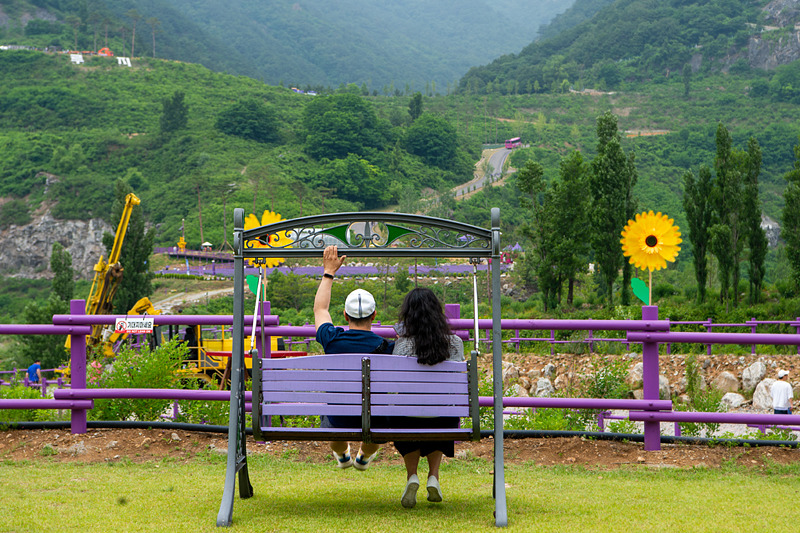 ‘무릉별유천지(武陵別有天地)’라는 이름은 고사에서 유래된 표현으로, 속세와는 다른 이상향을 의미합니다. 이름 그대로, 이곳은 일상의 스트레스와 소음을 잊게 만드는 평화로운 장소입니다. 아름답게 정돈된 라벤더 정원과 함께, 계곡과 폭포, 기암괴석이 어우러져 독특한 분위기를 자아냅니다. 여기에 매년 여름이면 열리는 동해 무릉별유천지 라벤더 축제는 방문객에게 마치 동화 속에 들어온 듯한 경험을 선사하죠.