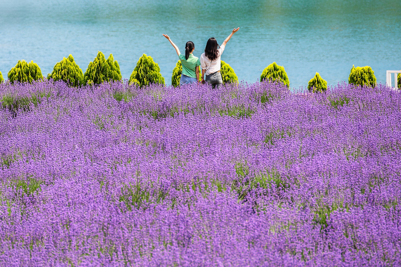 라벤더 정원: 약 18,100㎡(약 5,500평) 규모의 라벤더 정원에서 보랏빛 라벤더와 에메랄드빛 호수의 환상적인 조화를 감상할 수 있습니다.