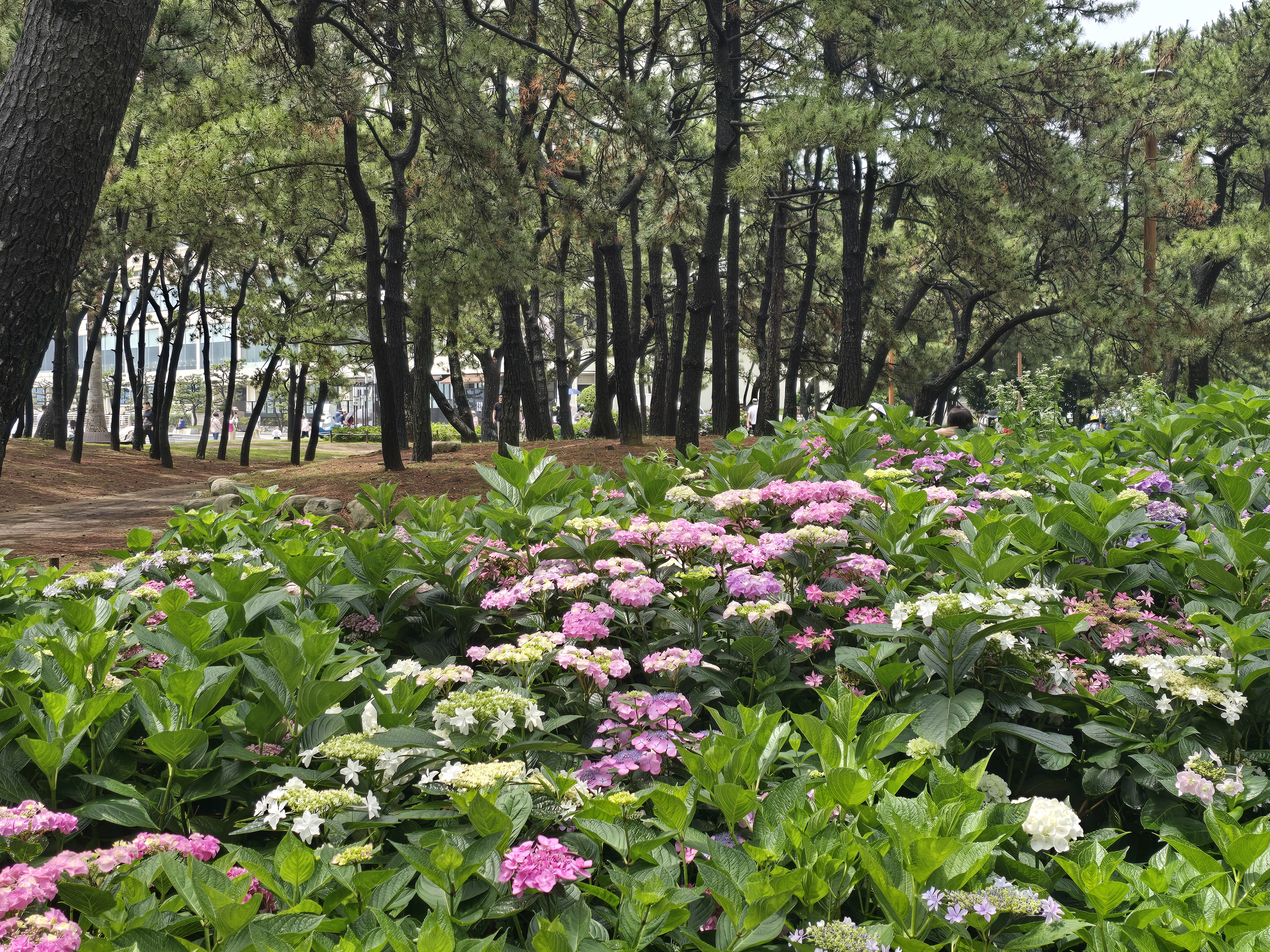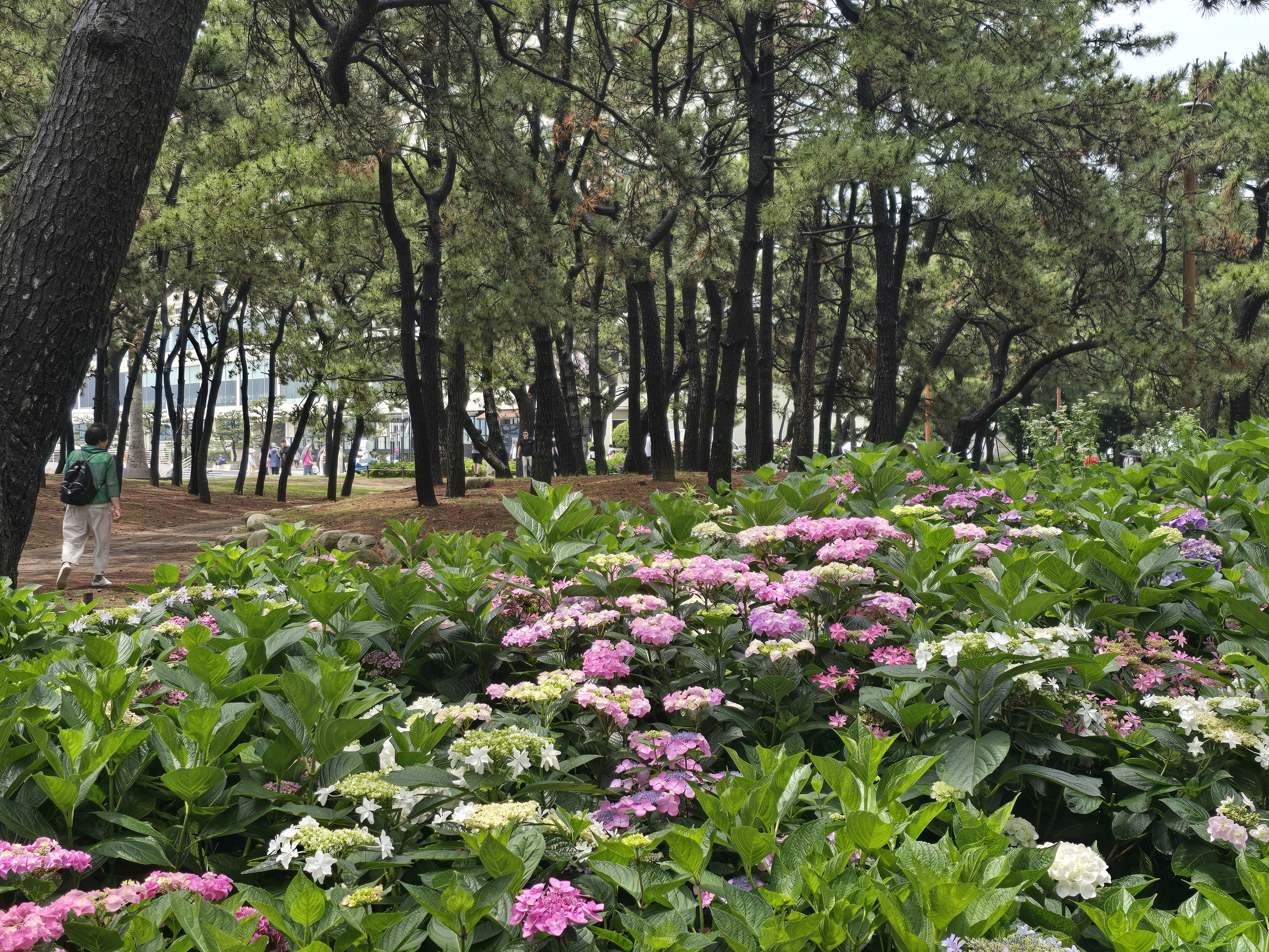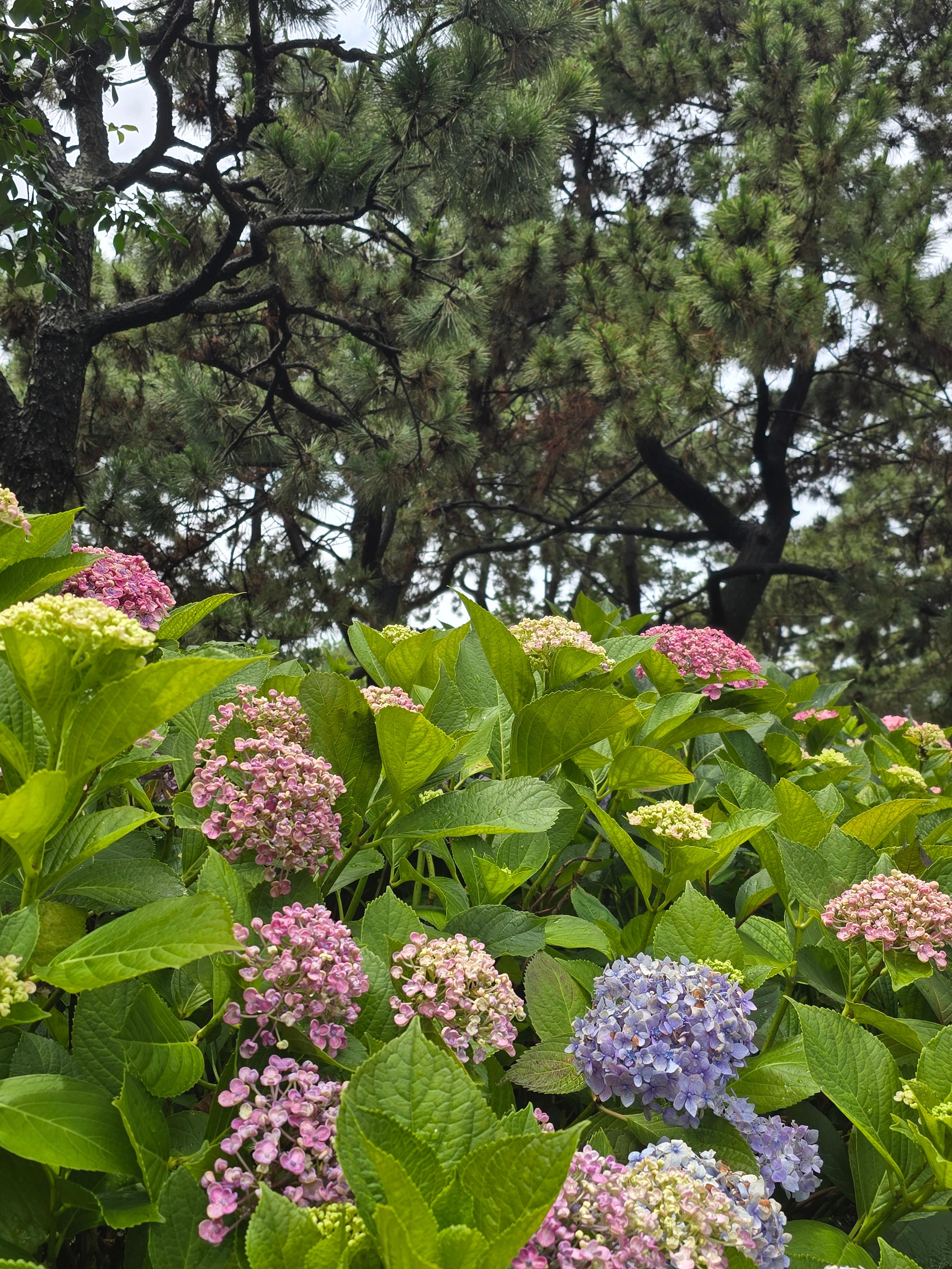 해운대 송림공원은 해운대 해수욕장과 동백섬 사이에 위치한 도심 속 공원입니다. 이곳은 울창한 소나무 숲 아래로 다양한 색상의 수국이 군락을 이루고 있어, 마치 숲과 꽃, 바다가 한데 어우러진 이색적인 풍경을 자랑합니다. 산책로를 따라 걷다 보면 분홍, 보라, 하늘색 등 다채로운 수국이 펼쳐져 있어 사진 촬영 명소로도 유명합니다.
