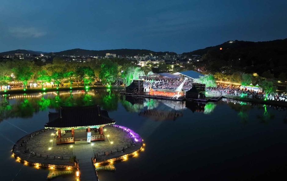 부여 궁남지 연꽃축제의 또 다른 매력은 야간에도 계속된다는 점입니다. 축제 기간 중에는 궁남지가 조명으로 화려하게 장식되어 ‘야(夜)한밤에 궁남지’라는 이름의 야간 경관이 펼쳐집니다. 동적인 파노라마 LED와 사랑 포토존, 드론 아트쇼 등이 준비되어 있어 낮과 밤 모두 색다른 분위기를 느낄 수 있습니다.