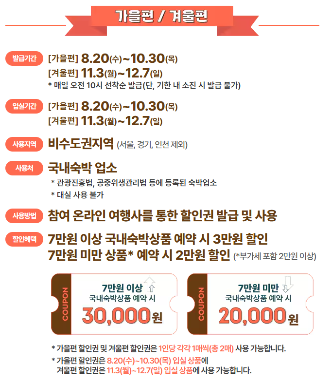 서울·경기·인천을 제외한 비수도권 숙소에 최대 3만원 할인쿠폰이 제공되어,