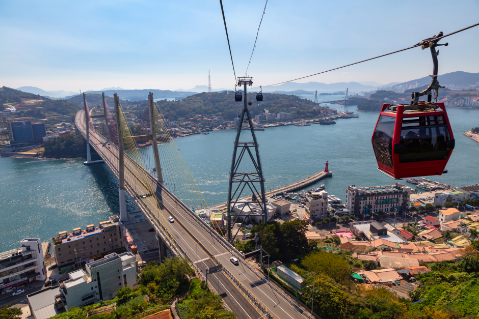 돌산과 자산공원을 잇는 케이블카는 바다 위를 가로지르며 이동하는 독특한 경험을 제공합니다.