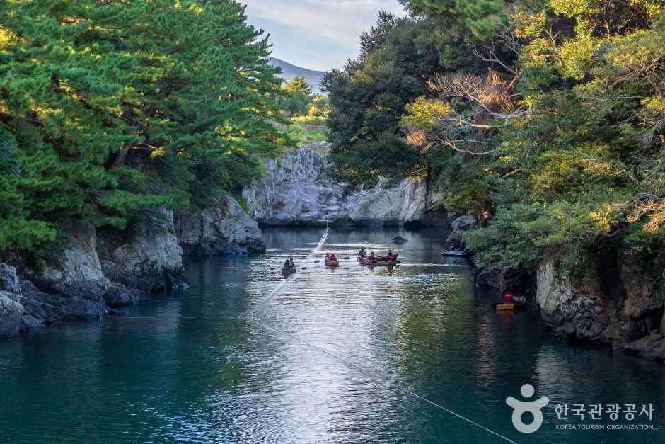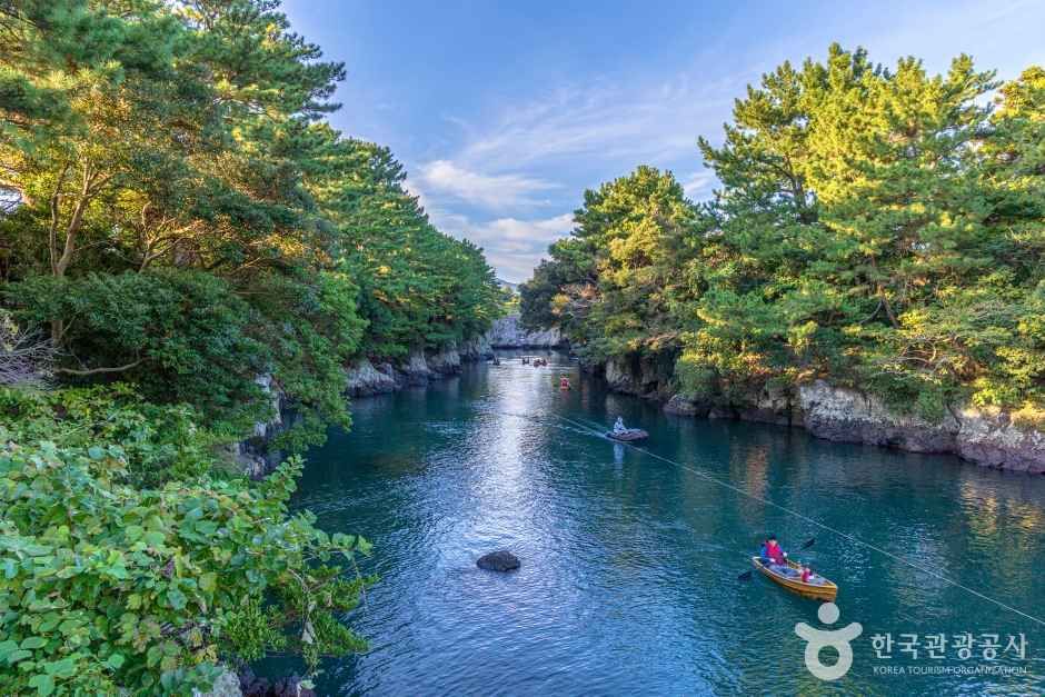 쇠소깍: 민물과 바닷물이 만나는 깊은 골짜기인 쇠소깍은 에메랄드빛 물 위에서 나룻배를 즐길 수 있는 제주도 가볼만한곳 10곳 이색 코스입니다. 국가유산의 정취와 액티비티를 동시에 즐기는 제주도 가볼만한곳 10곳 명소입니다.