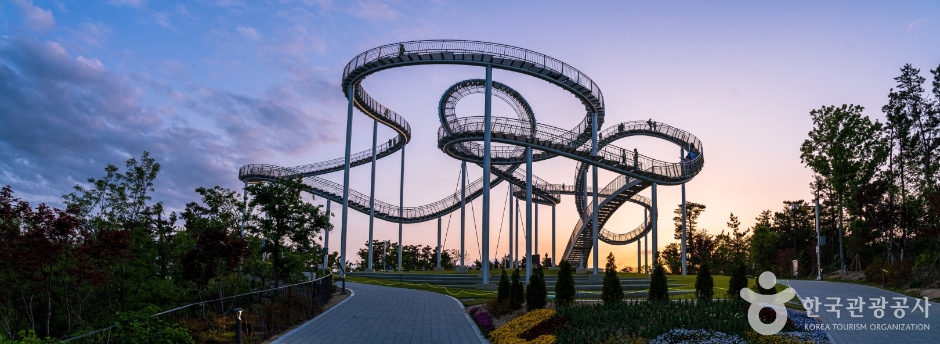 국내 최초이자 최대 규모의 체험형 조형물로, 철강 도시 포항의 상징성을 반영한 독특한 구조물이 눈에 띕니다.