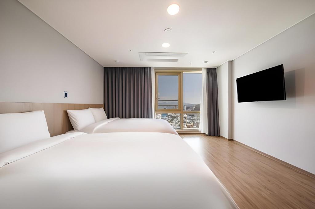 이순신광장과 가까워 불꽃축제 관람 접근성이 뛰어나며, 객실 중 오션뷰 방향은 여수항과 불꽃을 함께 볼 수 있습니다.